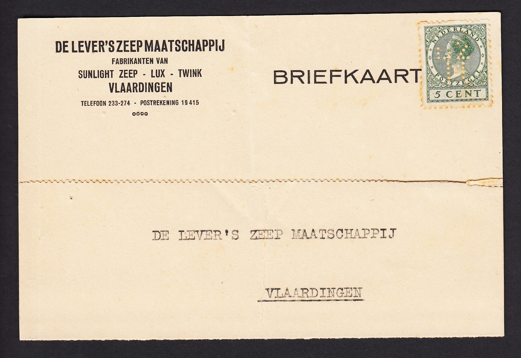 LZM in R22 op firmakaart, niet gestempeld, wel gebruikt Kavelnummer 587 Kavel Detail | |  |